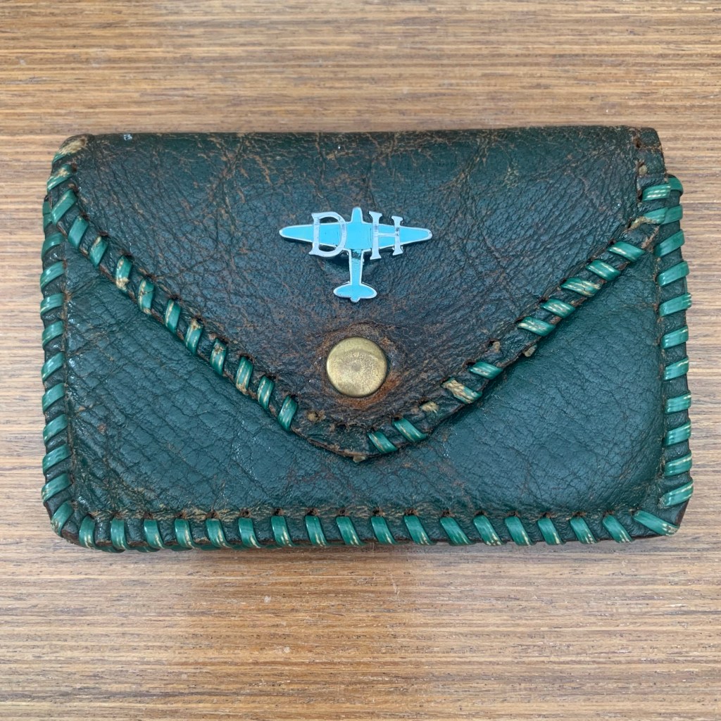 It was decorated on the front with what looked like an enamel pin, in the shape of a plane, with the letters ‘D H’ incorporated into the design.