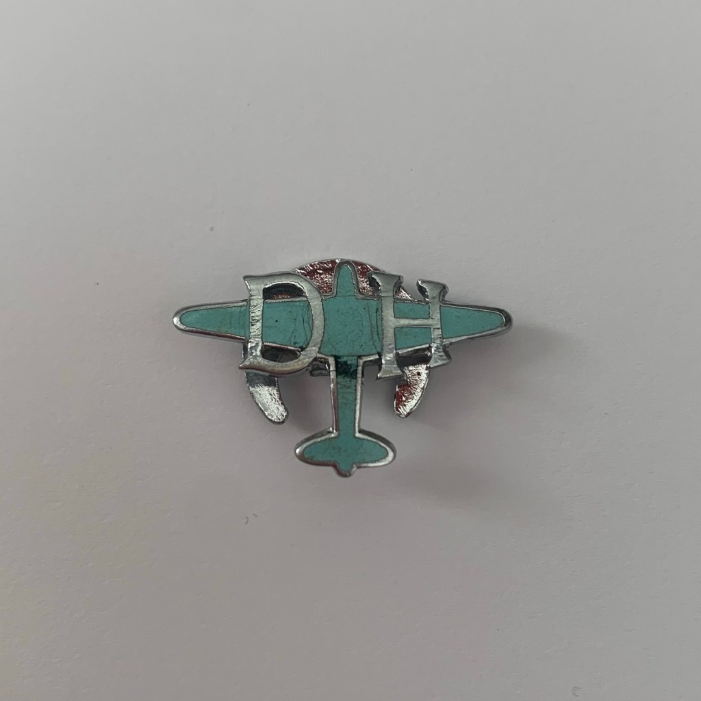 De Havilland produced a range of lapel badges in different styles, some were designed for the social club members (featuring the letters DHSC – de Havilland Social Club) whilst others were worn by workers at their factories.