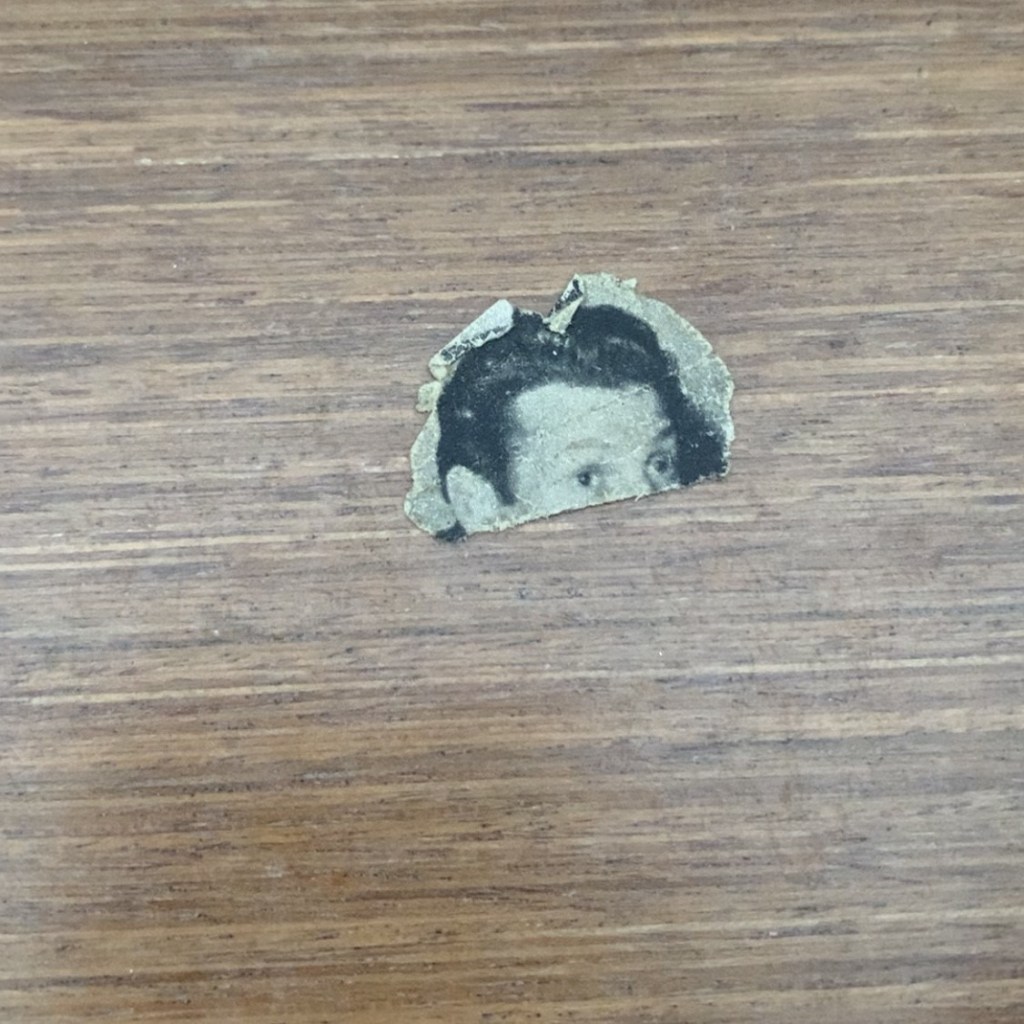 When I had a better look at the purse at home, I realised that it wasn’t completely empty as I’d initially thought. The only thing inside was a tiny cutting from a magazine, showing half a man’s face. Weird.